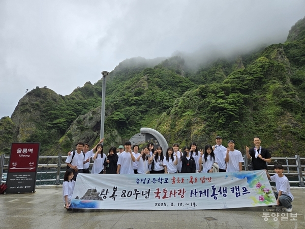 음성고(교장 홍석중)가 지난 12~14일 2박 3일간 광복 80주년을 맞아 학생과 교직원이 함께 참여해 울릉도와 독도의 역사와 자연을 체험하며 애국심을 고취하는 ‘국토사랑 사제동행 캠프’를 가졌다.