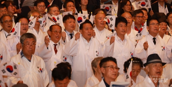 이날 행사장 곳곳에서는 광복 80주년 기념 태극기나무 만들기, 대형 태극기 서명 챌린지, 독립운동 사진전, 나라사랑 무궁화 전시, 천년대종 개방·타종 체험 등 부대행사도 펼쳐졌다.