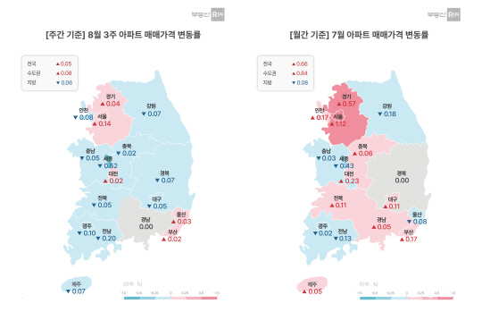 해당 기간 서울은 0.14%, 수도권 0.08%, 경기·인천은 0.02%씩 올랐으나, 5대 광역시와 기타 지방은 각 0.01%, 0.13% 하락했다.