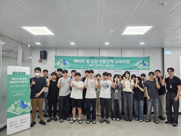 충북에너지산학융합원은 ‘배터리 셀 공정 전문인력 교육과정’을 지난 14일 성공적으로 마무리했다. 이번 교육은 7월 21일부터 19명의 예비 취업자들이 참여한 가운데, 충북 청주에 위치한 배터리제조검증지원센터에서 진행됐다.