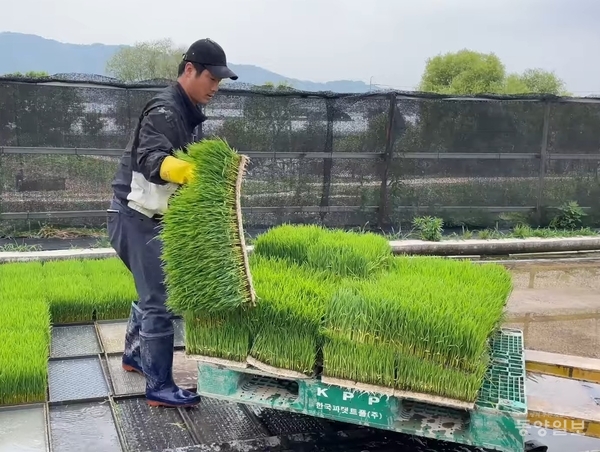해당 방식은 창고 용지에 콘크리트를 타설해 양생한 뒤 그곳에 모를 키우는 방식으로 일손이 대폭 줄어드는 효과가 있다.