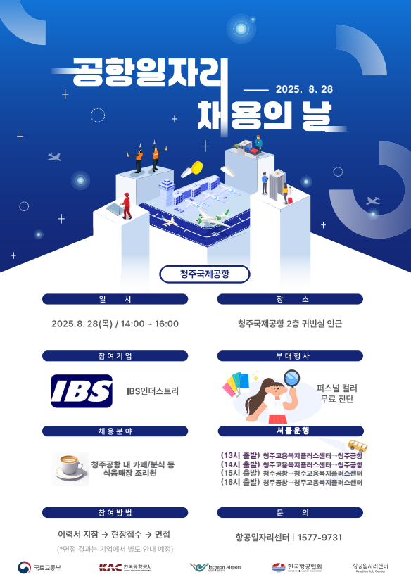 한국공항공사는 오는 28일 청주공항 2층 국제선 일반 대합실에서 '청주 공항 일자리 채용의 날' 행사를 연다.