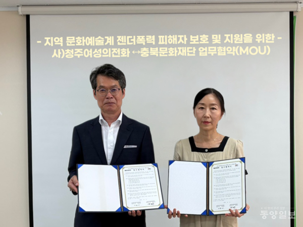 충북문화재단(대표이사 김갑수)은 지난 18일 (사)청주여성의전화(대표이사 김현정)와 업무협약을 했다.