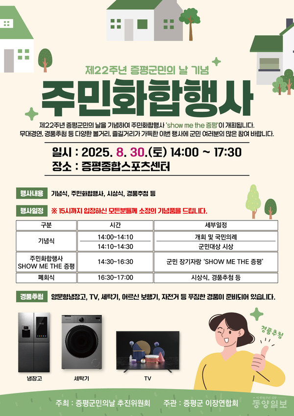 행사는 증평군민의 날 추진위원회(공동위원장 이재영·조윤성·안창태)가 주최하고 증평군이장연합회가 주관한다.