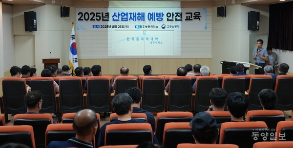 충주상공회의소(회장 박광석)가 21일 한국폴리텍대 충주캠퍼스에서 충주고용지청과 공동으로 산업재해 예방 안전 교육을 마련했다.