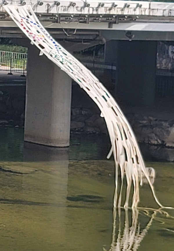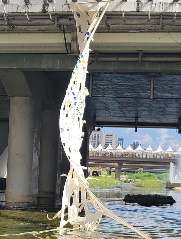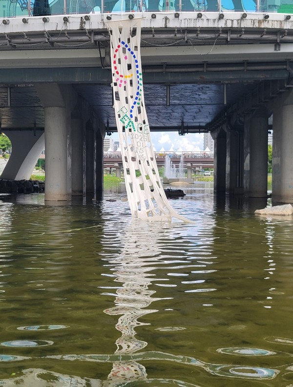 행사는 오후 2시 개막 후 3시까지 작가와의 만남, 그리고 현장 촬영이 진행됐으며, 오후 4시 철수로 마무리됐다. 목척교를 배경으로 강과 다리를 연결한 이번 작품은, 분단 80년의 상처를 넘어 예술로써 평화를 모색하는 자리였다.