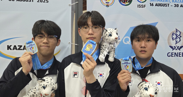 김 선수는 또 남자주니어 10m공기권총 경기 단체전에서 김강현(강원대), 송승호(한국체대) 선수와 함께 팀을 이뤄 1734점으로, 인도를 9점차로 여유롭게 제치고 금메달을 목에 걸었다.