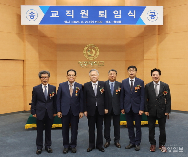 청주대(총장 김윤배)가 27일 본관 청석홀에서 2025학년도 1학기 교직원 퇴임식을 진행했다.