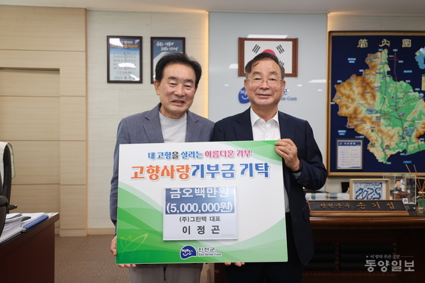 이정곤 (주)그린텍 대표가 29일 진천군청을 방문해 고향사랑기부금 500만원을 기탁했다. 진천군