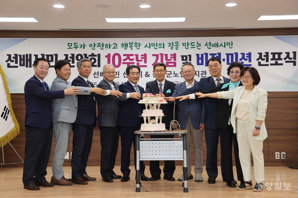 진천군 선배시민 선암회(회장 이규창)는 군 노인복지관에서 선배시민 선암회 10주년 기념과 비전·미션 선포식을 열었다.