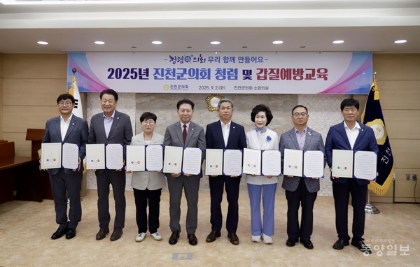 진천군의회(의장 이재명)는 2일 유용원(국민권익위) 교수를 초청해 의회 소회의실에서 진천군의회 의원과 의회사무과 전 직원을 대상으로 ‘2025년 부패방지 및 갑질예방교육’을 실시했다. 진천군의회