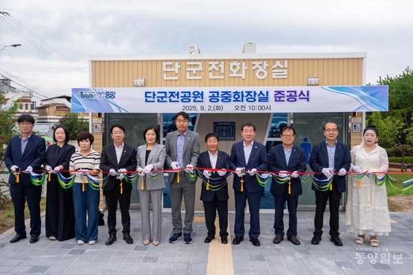 증평군이 단군전 역사공원에 공중화장실을 설치하고 준공식을 가졌다.
