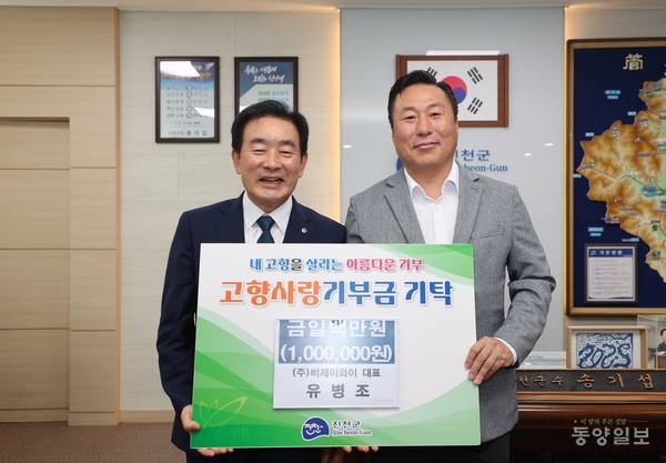 진천군 이월면 출신의 유병조 ㈜비제이와이 대표가 3일 진천군청을 방문해 고향사랑기부금 100만원을 기탁했다. 진천군