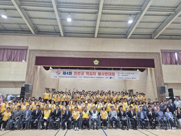대한적십자사 진천군협의회(회장 홍경순)는 6일 문상초등학교 새솔관에서 적십자 봉사원 250여명이 참여해 ‘대한적십자사봉사회 진천군협의회 봉사원대회’를 열었다. 진천군