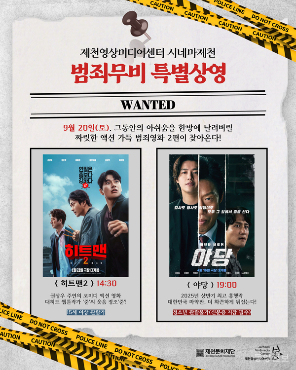 이번 ‘2025 시네마제천 범죄무비 특별상영’은 지난달 열렸던 열대야 축제 당시 우천 등으로 상영이 취소돼 아쉬움을 남겼던 작품들을 시민들에게 다시 선보인다.