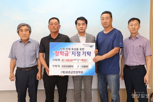 보은군양파작목회(회장 지창현)가 9일 보은군청을 방문해 지역 인재 육성과 교육 발전을 위해 (재)보은군민장학회(이사장 최재형)에 장학금 100만 원을 기탁했다.