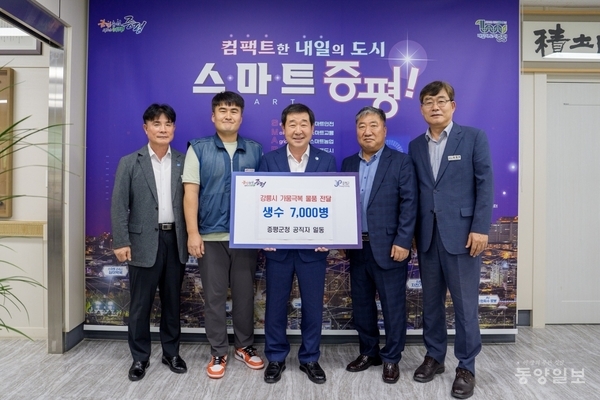 증평군이 강릉지역의 극심한 가뭄피해 극복을 돕기 위해 십시일반 모금한 성금으로 생수 7천여 병을 지원했다.