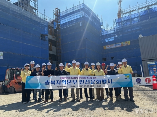 LH충북본부(본부장 조은숙)는 10일 청주시 내덕동 아파트 건설현장을 찾아 '안전문화 행사'를 열었다.