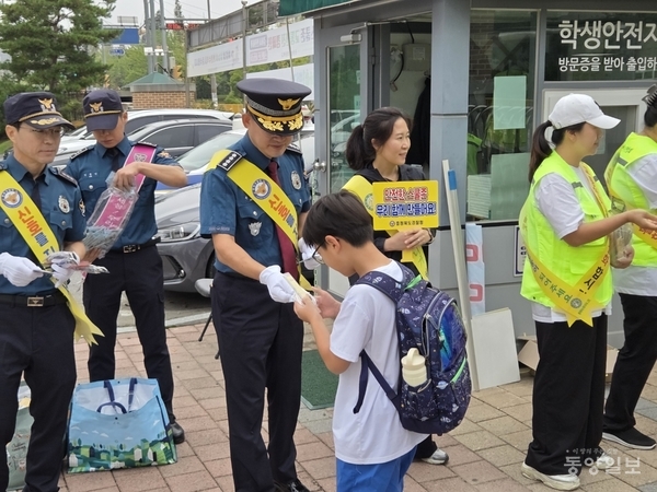 진천경찰서(서장 손휘택)는 10일 경찰과 녹색어머니회, 모범운전자회 등 50여명이 참여해 상신초에서 어린이 교통안전과 학교폭력 예방 캠페인을 실시했다. 진천경찰서