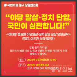 국민의힘 대전 중구당원협의회는 오는 19일 국민의힘 대전시당 당사에서 ‘이재명 정권의 야당말살·정치탄압 실상 당원교육’을 한다.
