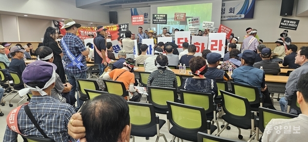 반대 주민들, 꽹리·북 치며 방해…회사 측, 공청회 중단 선언