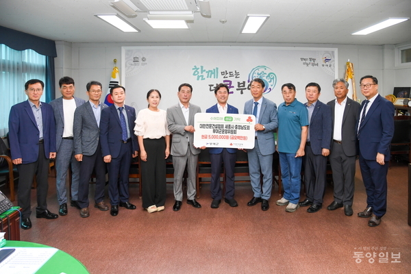 대한전문건설협회 세종시·충남도회 부여군운영위원회(위원장 천근학)는 최근 집중호우로 피해를 입은 군민들을 돕기 위해 성금 500만원을 부여군에 기탁했다고 16일 전했다.<사진>