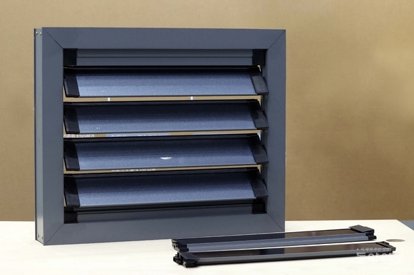 이 제품은 아파트 등 공동주택의 에어컨 실외기실에 공기 순환을 위해 설치된 루버(외장마감재)의 블레이드(날개)에 태양광모듈을 적용한 신재생에너지 기술 제품이다.