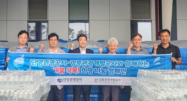 단양관광공사(사장 김광표)와 강릉관광개발공사(사장 강희문)는 강릉 지역의 극심한 가뭄 위기 극복을 지원하기 위해 ‘생명수 나눔 행사’를 공동으로 했다.
