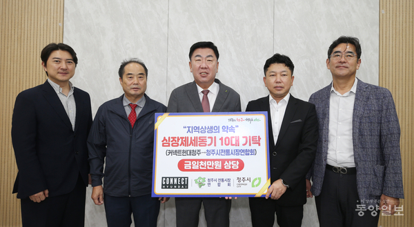커넥트현대 청주(점장 정재훈)는 18일 지역 상생 발전을 위해 청주시 전통시장연합회에 자동심장제세동기(AED) 10대(1000만원 상당)를 기탁했다.