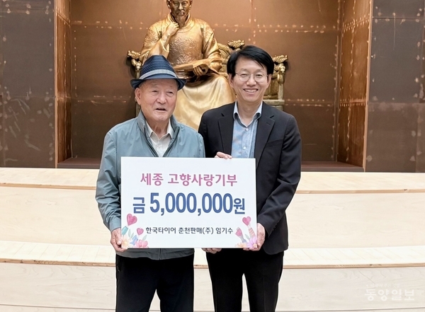 임기수 한국타이어 춘천판매㈜ 회장이 지난 19일 세종시청에서 고향사랑기부금 300만원을 기부했다.