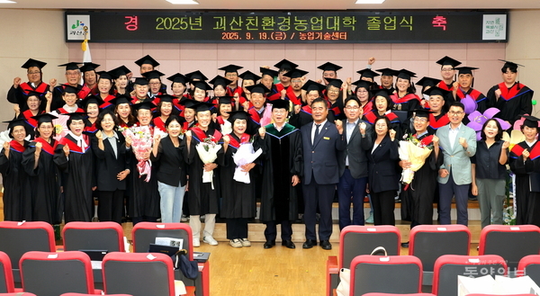 괴산군 농업기술센터(소장 안미숙)가 19일 농심관에서 ‘친환경 농업대학’ 졸업식을 개최하고 작목별 전문가 59명을 배출했다.