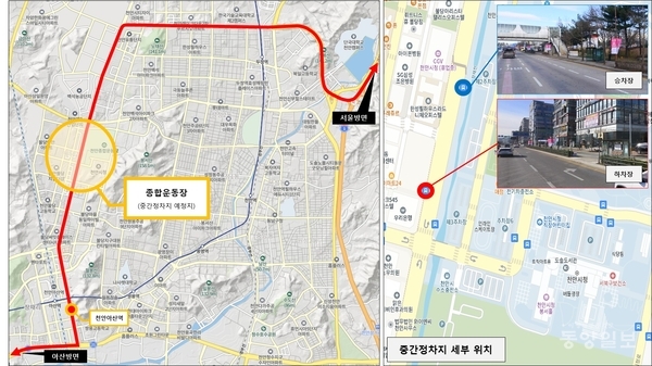 정차지 추가는 불당동 등 서북구 지역의 대중교통 접근성 등의 이유가 고려됐다.