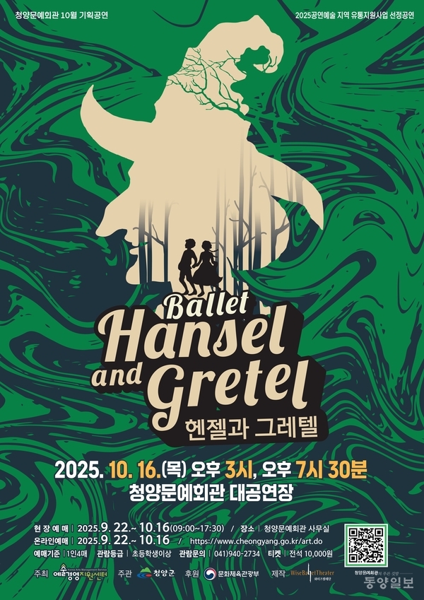 청양군은 오는 10월 16일 청양문화예술회관 대공연장에서 와이즈발레단의 <헨젤과 그레텔> 공연<사진>을 선보인다.