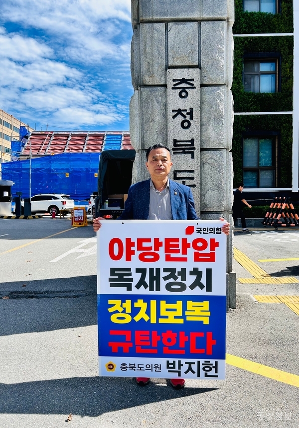 박지헌 충북도의원, 이재명 정부 ‘야당탄압’ 규탄 1인 시위