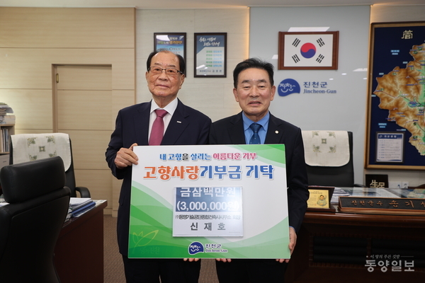 (주)동명기술공단종합건축사사무소 신재호 회장은 23일 진천군청을 방문해 지역사회를 위해 고향사랑기부금 300만원을 전달했다. 진천군