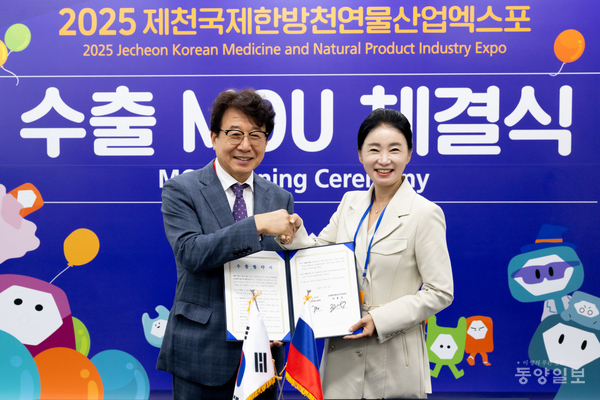 2025제천국제한방천연물산업엑스포 산업관에 참여한 농업회사법인 ㈜옻가네(대표 지용우)가 23일 엑스포 행사장에서 러시아 J&S LLC 기업과 400만불(한화 약 55억원) 규모의 수출 협약을 했다.
