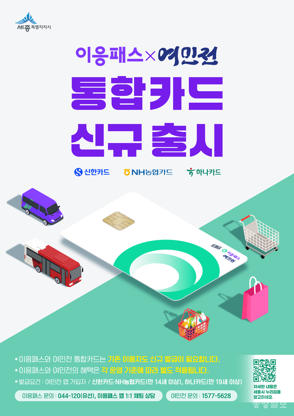 오는 10월9일~11일 3일간 열리는 세종한글축제 기간 중 새 통합카드로 세종시 대중교통을 이용하는 시민들 중 카드사별로 각 40명을 추첨해 여민전 5만 포인트를 지급한다.