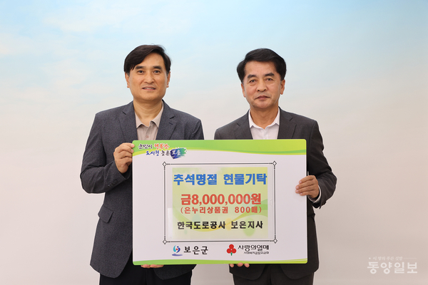 한국도로공사 보은지사(지사장 황인준)가 추석 명절을 앞둔 24일 보은군청을 방문해 지역 저소득층을 위해 써 달라며 온누리상품권(1만원권) 800매를 기탁했다.