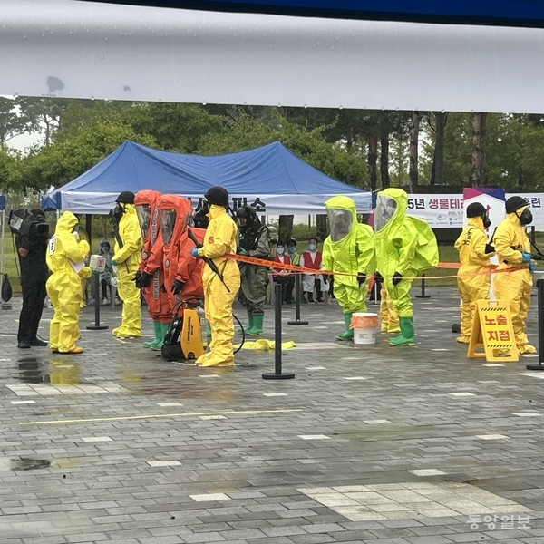 세부적으로는 △생물 테러 의심 신고 및 상황 전파 △민간인 대피 및 통제 △초동 조치팀 현장 도착 △다중 탐지 키트 검사 및 검체 채취 △제독소·응급의료소 설치 △노출자 이송 △환경 제독 등을 실시했다.