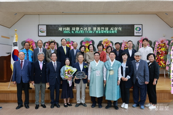 25일 영동군 과일나라 체험촌 체험전수관 회의실에서 열린 15회 자랑스러운 영동인 시상은 정영철 영동군수, 신현광 영동군의장을 비롯해 지역내 기관·단체장과 가족, 친지, 학교 동문 등이 참석해 수상자의 영예를 함께 축하했다.