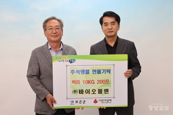 보은의 ㈜바이오플랜 유승권 대표가 25일 보은군청을 방문해 다가오는 추석 명절 어려운 이웃을 위해 써 달라며 백미(10kg) 200포를 기탁했다.