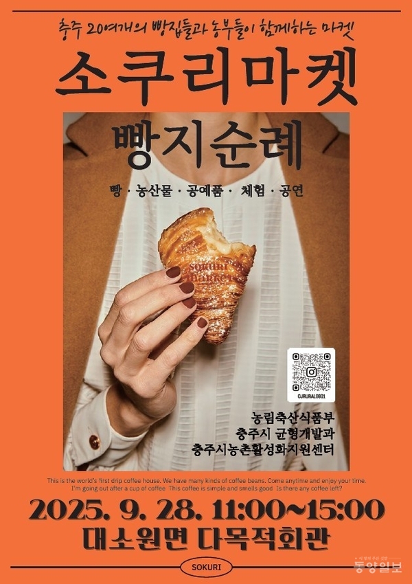 충주시농촌활성화지원센터가 오는 28일 오전 11시~오후 3시 대소원면 다목적회관 광장에서 두 번째 ‘소쿠리마켓 빵지순례’를 연다.