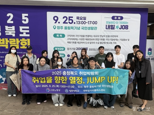 청주대(총장 김윤배) 대학일자리플러스센터(센터장 천미림)는 최근 열린 ‘2025 충청북도 취업박람회’에 학생들의 현장 참여를 지원해 진로 탐색과 취업 역량 강화를 돕고 있다고 28일 밝혔다.