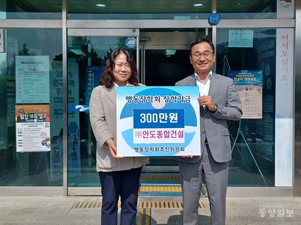 음성군 음성읍 ㈜안도종합건설 박철우 대표가 29일 맹동면 장학회 추진위원회(위원장 김태선)에 장학금 300만원을 기탁했다.