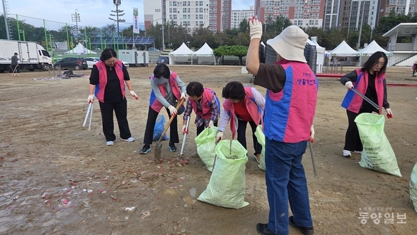 생활개선증평군연합회(회장 황송희)는 29일 40여명의 회원이 증평인삼골축제 행사장 일원에서 축제 종료 후 환경정화활동을 실시했다. 증평군