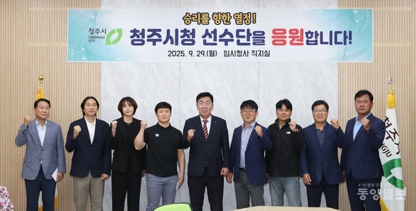 이범석 청주시장은 29일 임시청사 직지실에서 106회 전국체육대회 출전을 앞두고 있는 직장운동경기부 선수단 감독들을 만나 격려했다.