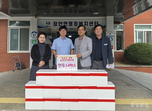 충북 보은군 장안농공단지협의회(회장 정태원)가 30일 장안면 행정복지센터를 방문해 민족 최대 명절인 추석을 맞아 지역내 경로당 노인들에게 전달해 달라며 만두 14박스를 기탁했다.