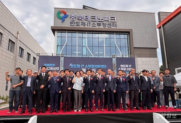 청주시 흥덕구 봉명동 스마트그린산단에 위치한 ‘반도체·IT 소부장 지원센터’가 지난달 30일 공식 개소식을 열고 본격적인 운영에 돌입했다.