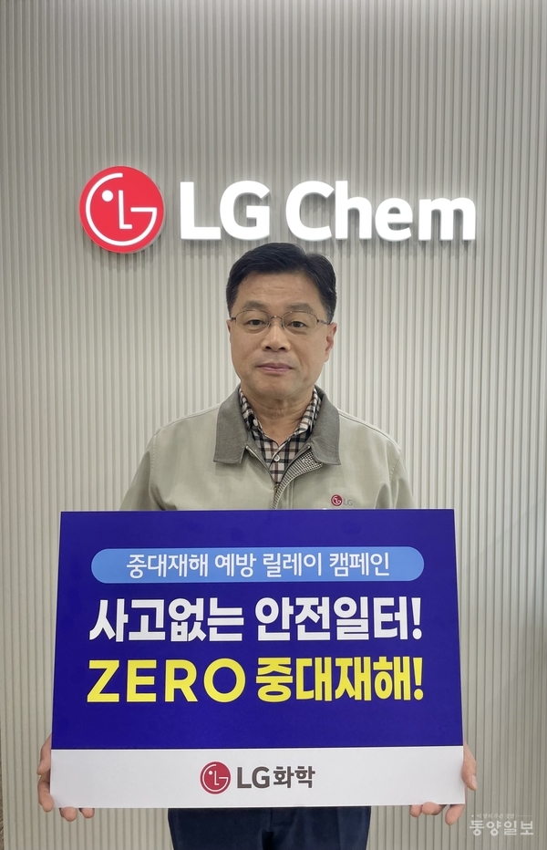 최종완 LG화학 청주공장 상무가 지난달 30일 지역사회 안전경영 문화 정착을 위해 추진하고 있는 '중대재해 예방 릴레이 캠페인'에 동참했다.