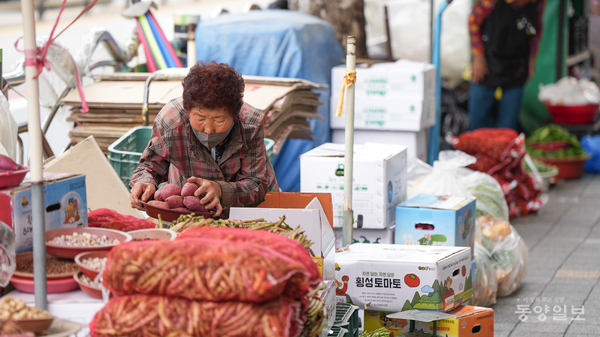 청주 중앙시장 노점 상인 이춘희씨 "손자 용돈도 못줄판, 이렇게 어려운적 처음"
